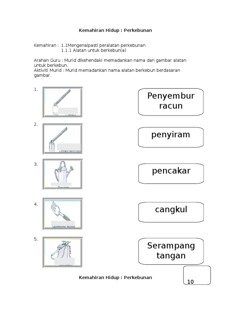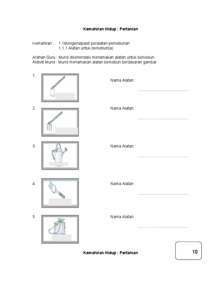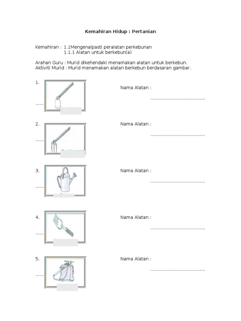 Lembaran Kerja Peralatan Berkebun Pdf